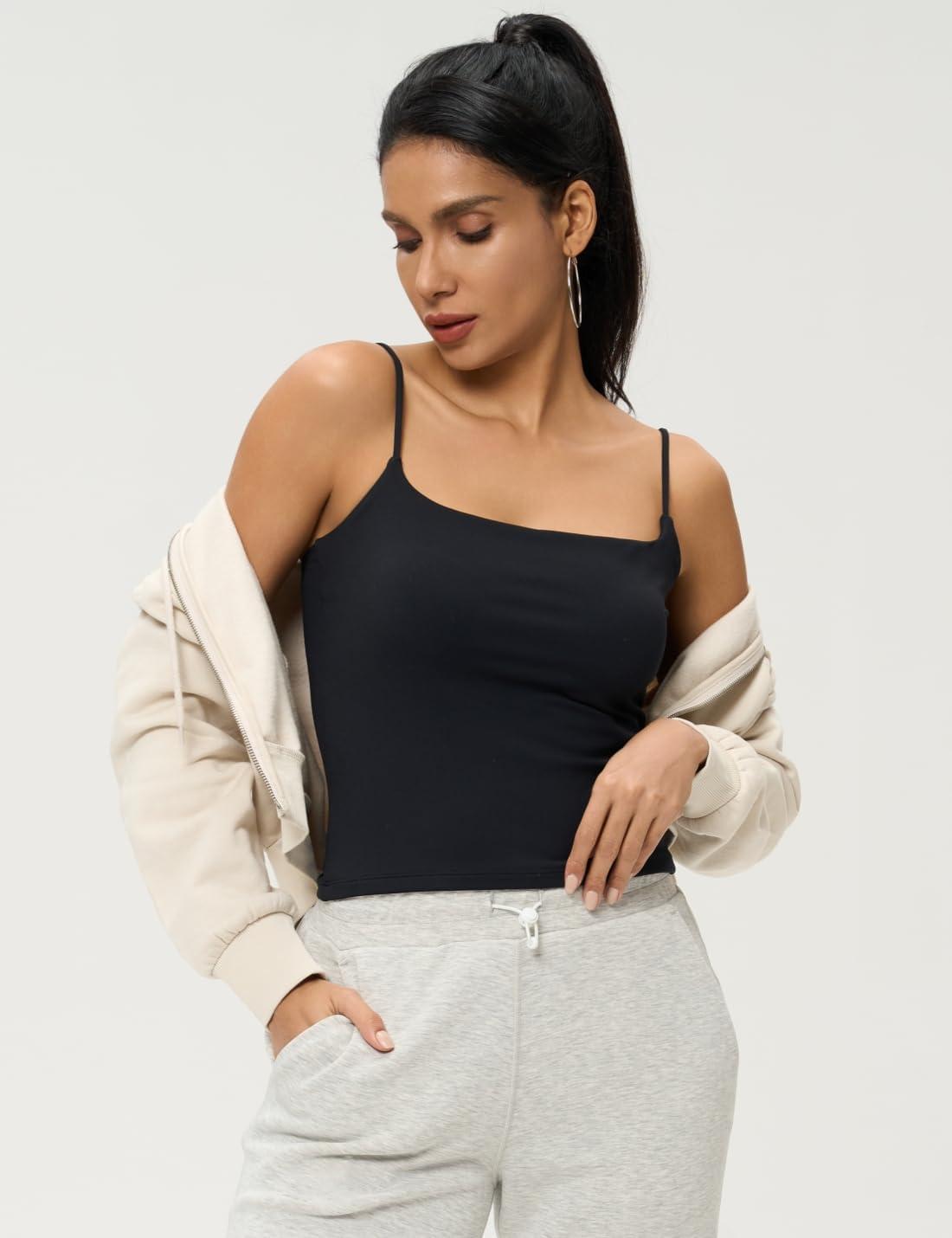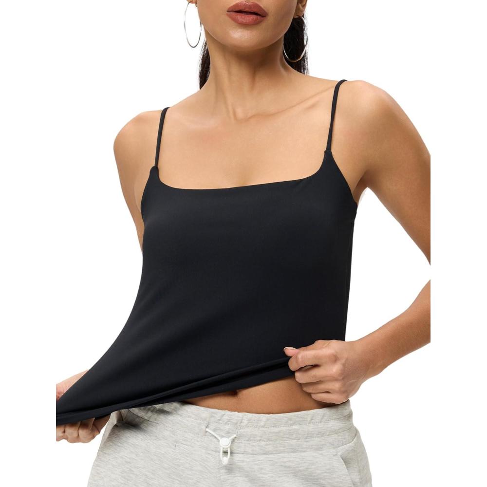 AJISAI 2025 Womens Camisole Tops Spaghetti Strap Tank Top Double Lined Adjustable Summer Crop Tops(Black)