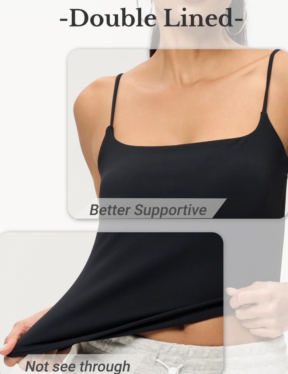 2025 Womens Camisole Tops Spaghetti Strap Tank Top Double Lined Adjustable Summer Crop Tops