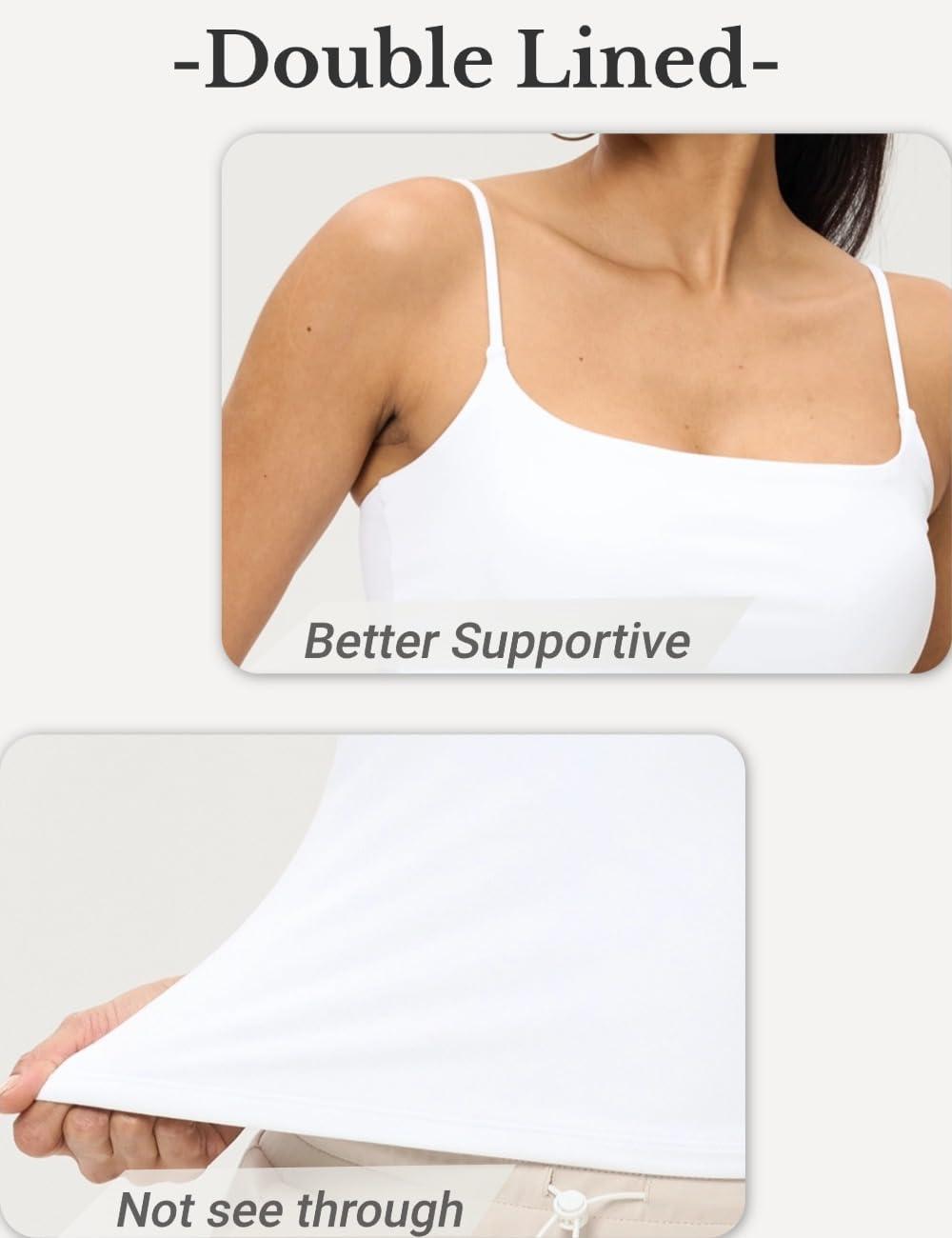 2025 Womens Camisole Tops Spaghetti Strap Tank Top Double Lined Adjustable Summer Crop Tops