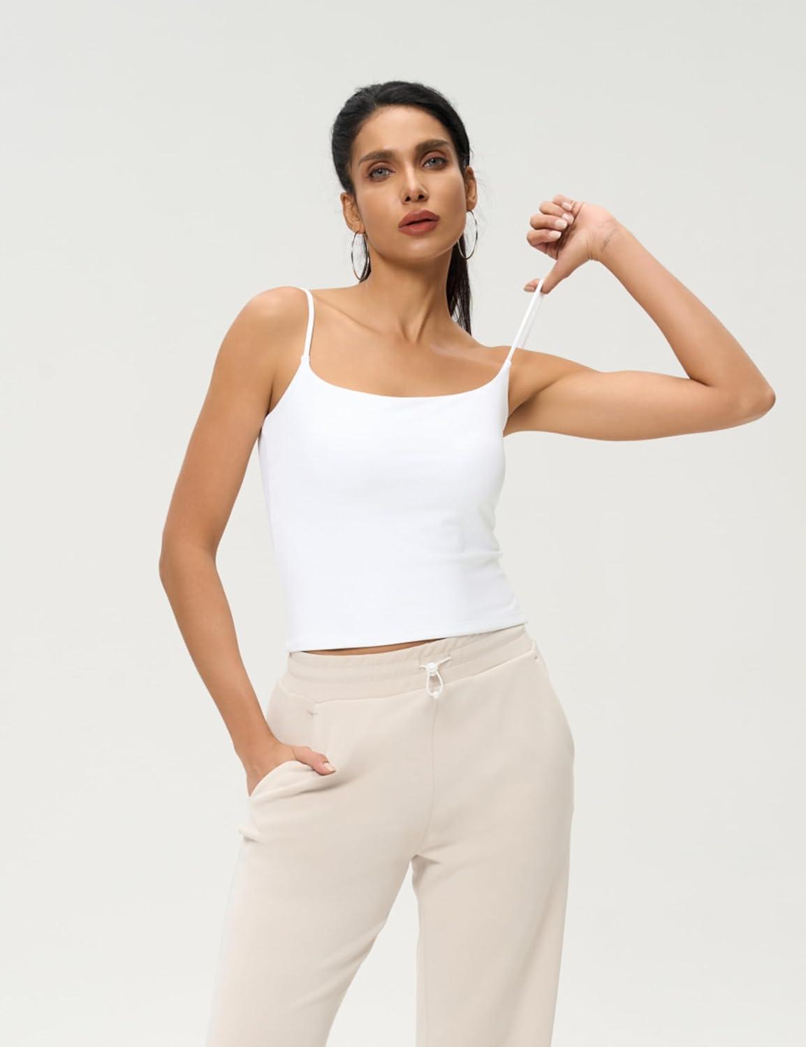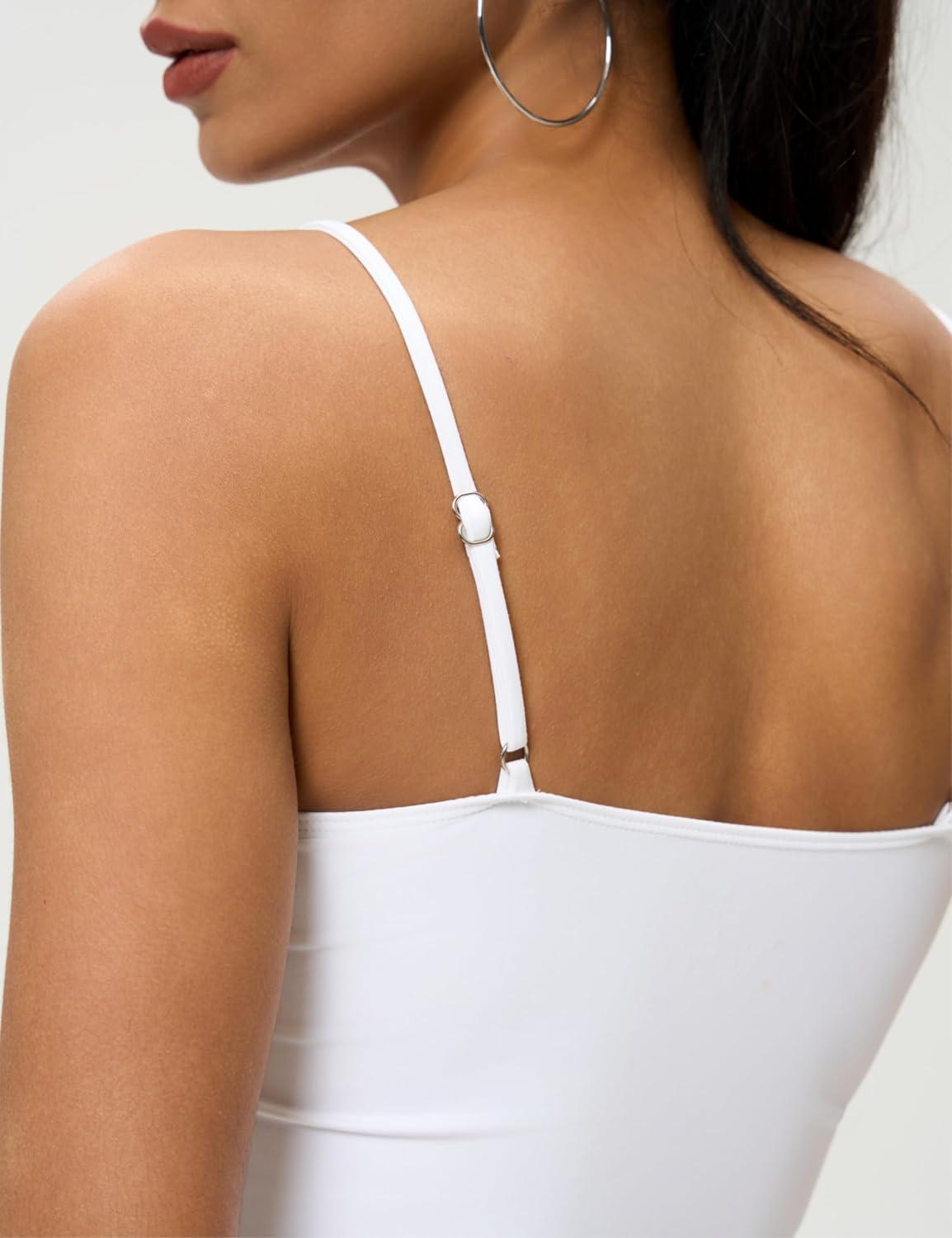 imageAJISAI 2025 Womens Camisole Tops Spaghetti Strap Tank Top Double Lined Adjustable Summer Crop TopsWhite