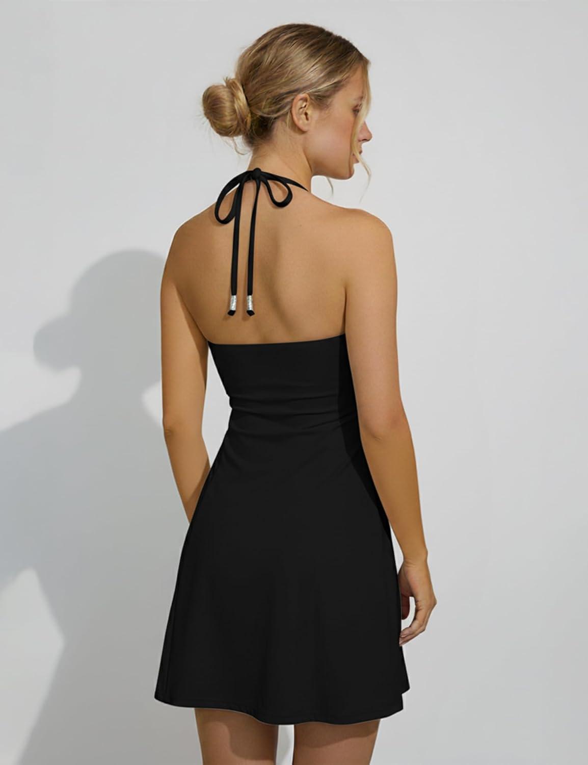 AJISAI Halter Tie Athletic Dress with Shorts Tennis Dresses Workout Golf Skort for Women 2025