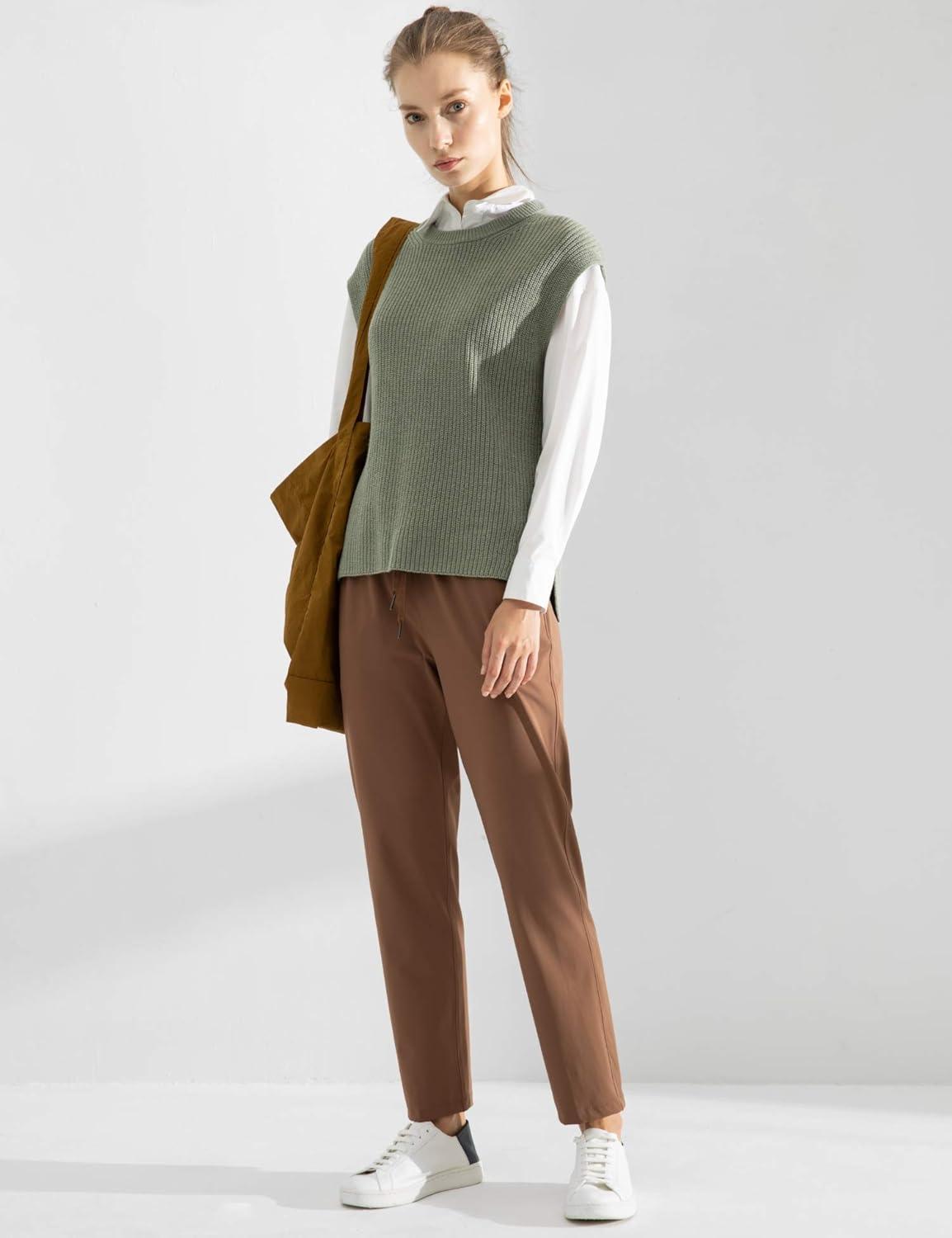 AJISAI Petite/Regular Women’s 7/8 Joggers Travel Pants with Pockets Lounge Casual Stretch Workout Pants(Brown)