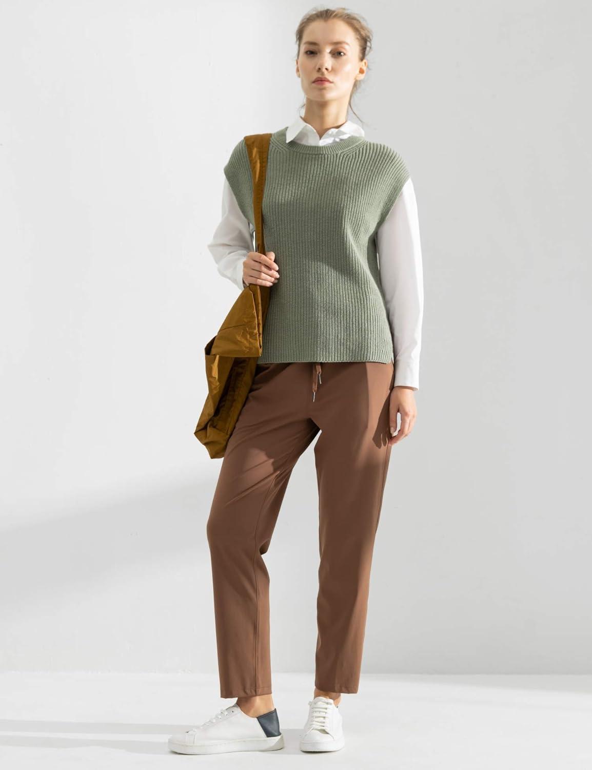 AJISAI Petite/Regular Women's 7/8 Joggers Travel Pants with Pockets Lounge Casual Stretch Workout Pants(Brown)