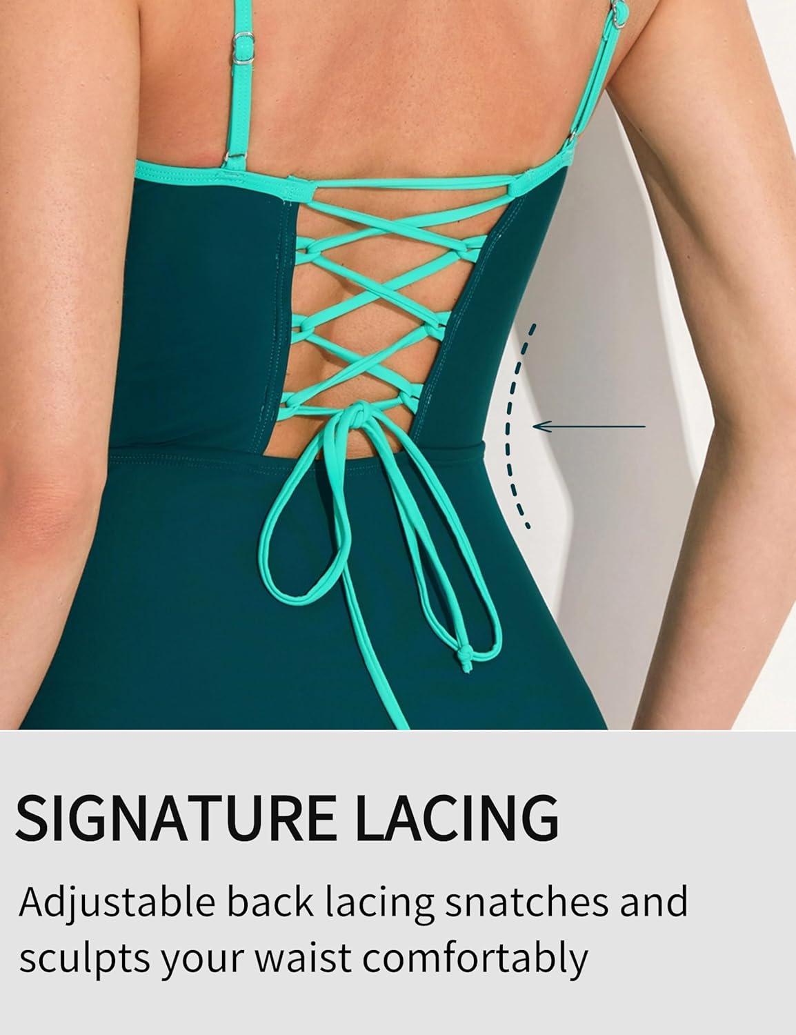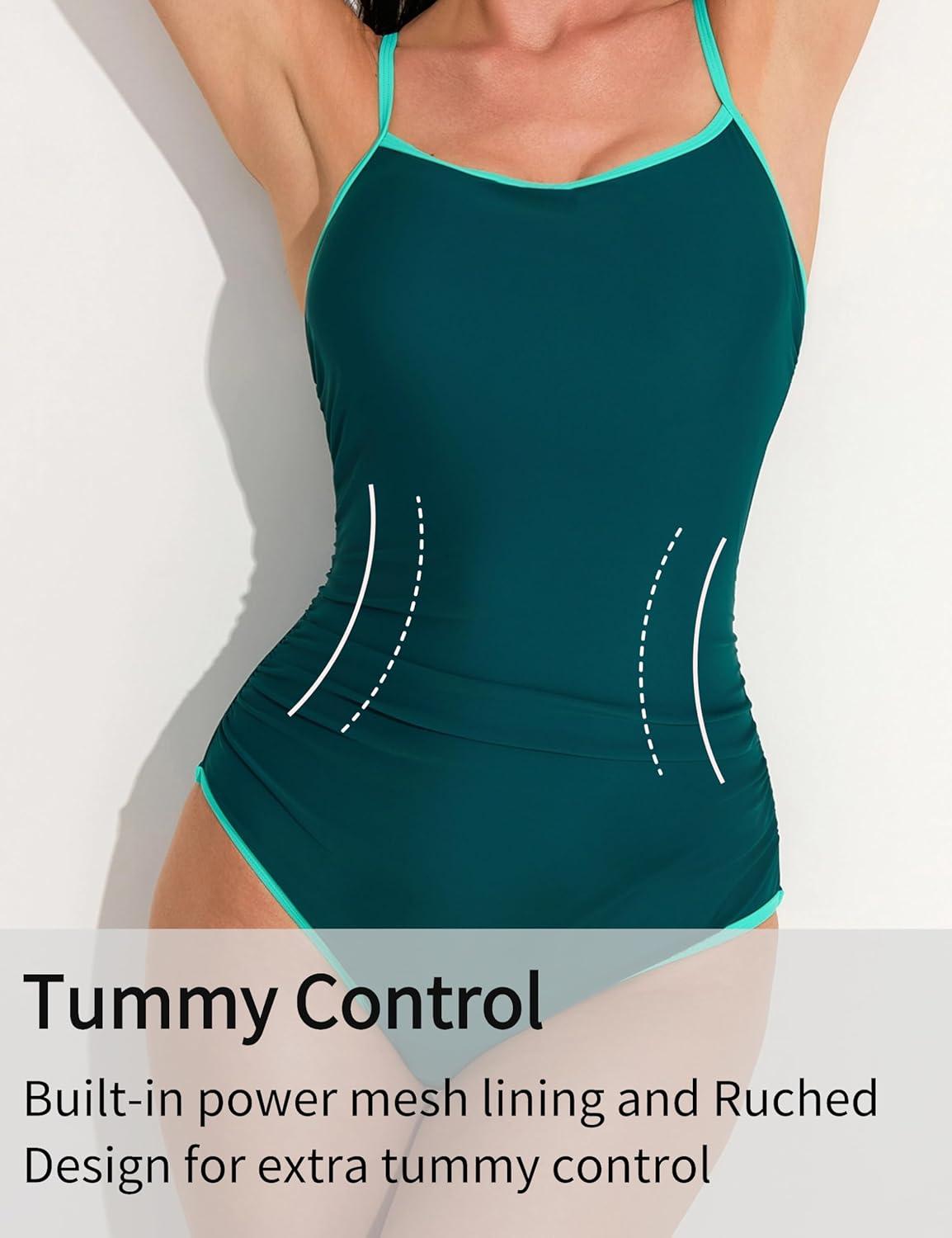 AJISAI Women One Piece Tummy Control Swimsuit Slimming Ruched Backless Bathing Suit Padded Swimwear(Green)