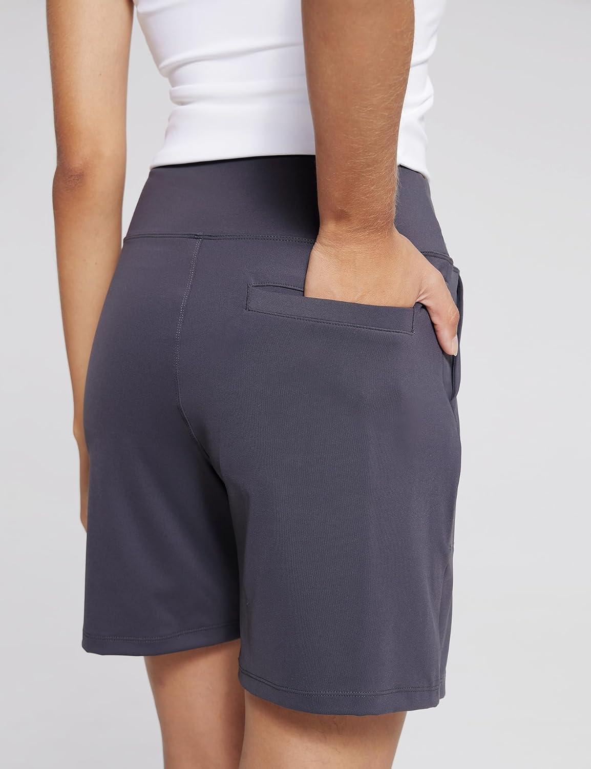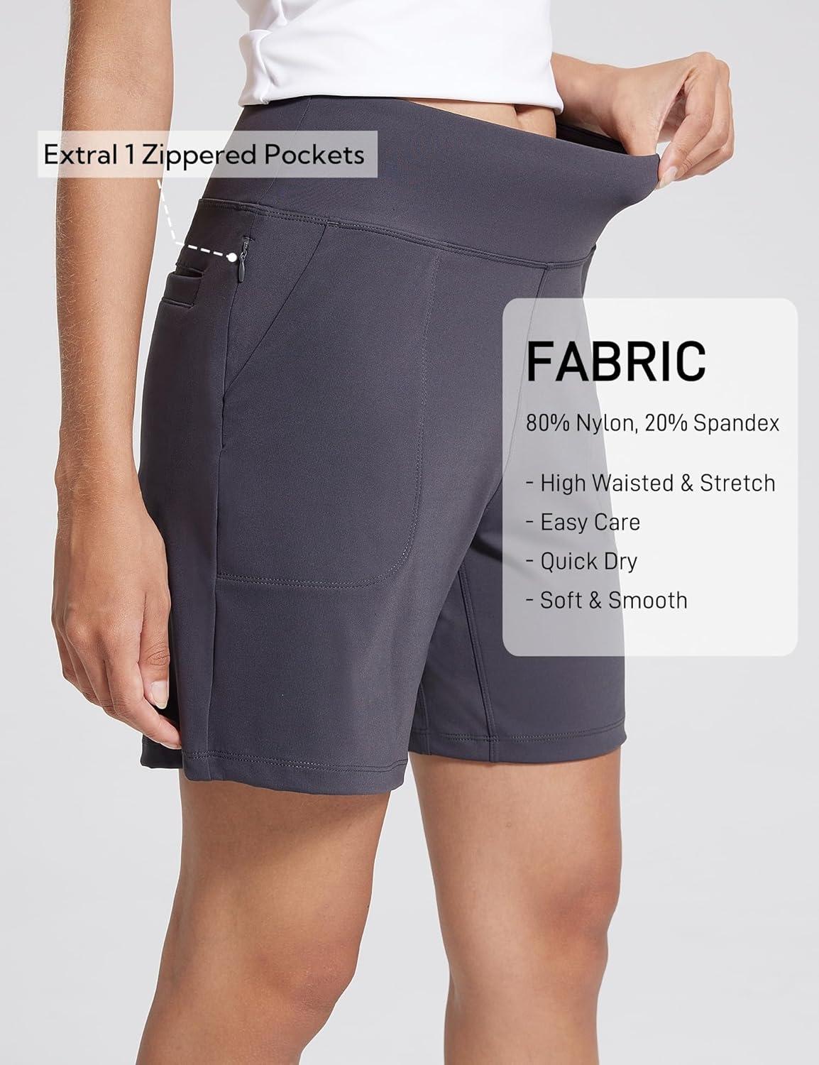 Women's 6.5″ Athletic Long Shorts with Zippered Pockets High Waisted Bermuda Shorts for Walking Running Casual