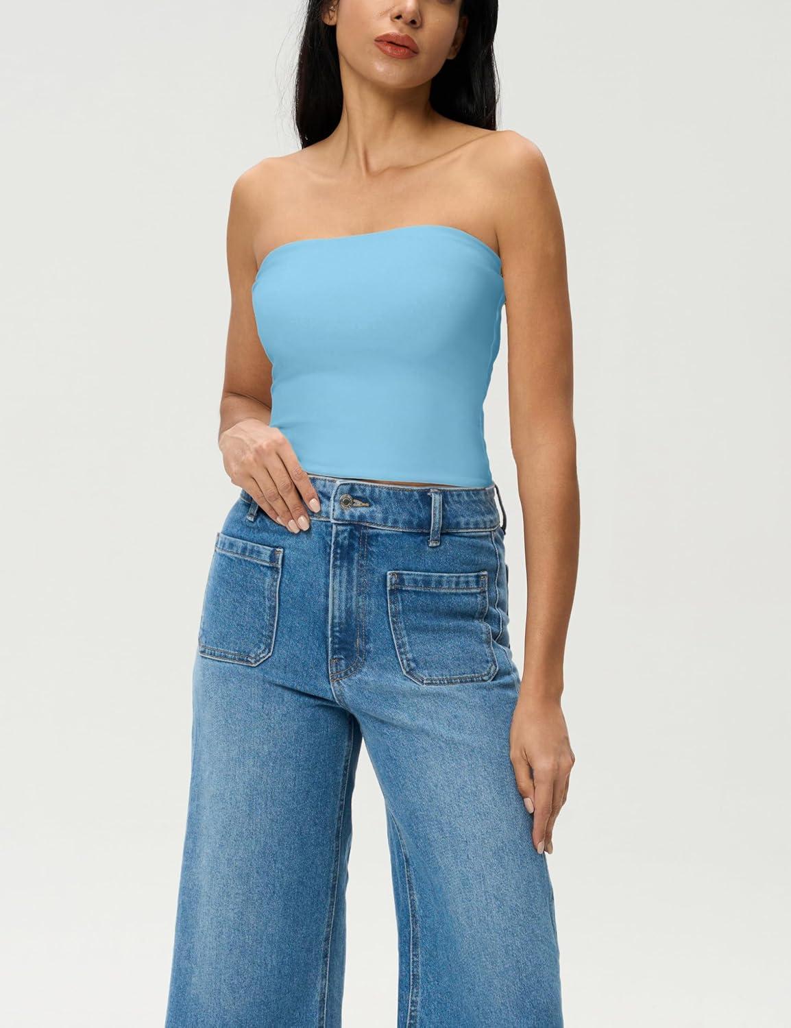 AJISAI Womens Double Lined Tube Tops Crop Going Out Tops Strapless Tank Summer Top 2025(Blue)