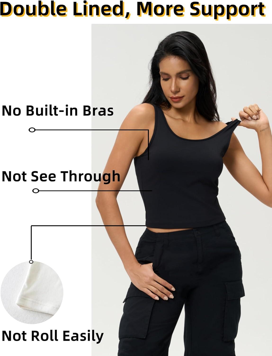 AJISAI Womens Double Lined Workout Tank Tops Scoop Neck Yoga Tanks Casual Crop Sleeveless Summer Top(Black)
