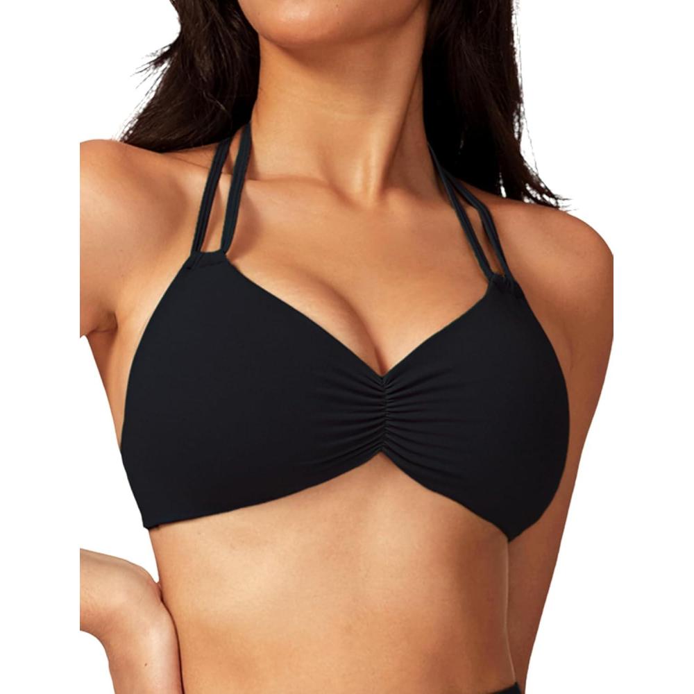 AJISAI Womens Halter Bikini Top Triangle V Neck Bathing Suit Top Low Impact Padded Sports Bra(Black)