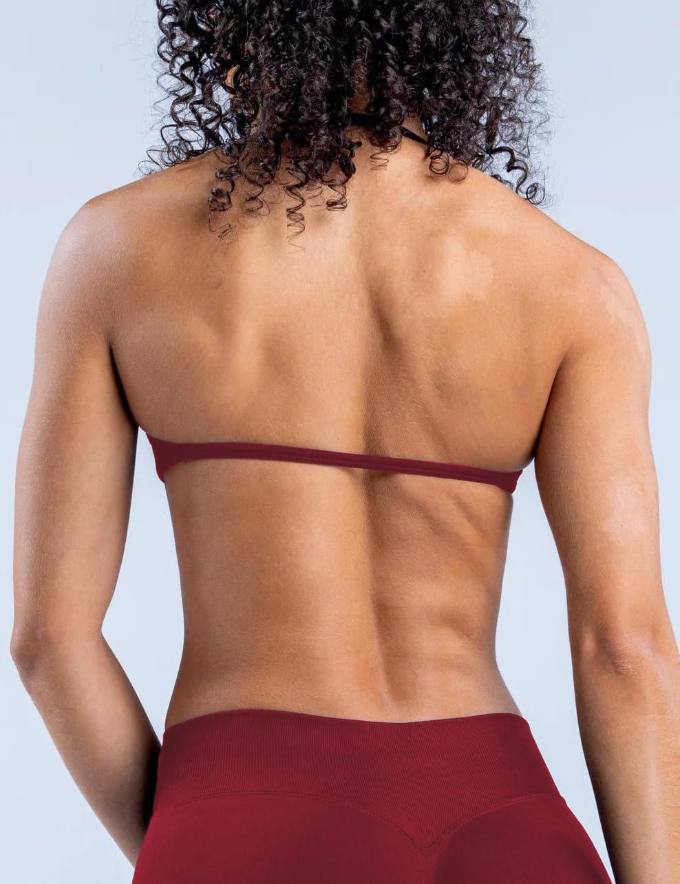 AJISAI Womens Halter Neck Padded Strappy Bra Seamless Sports Bras Backless Wireless with Removable Pads for Workout Gym Yoga(Burgundy)