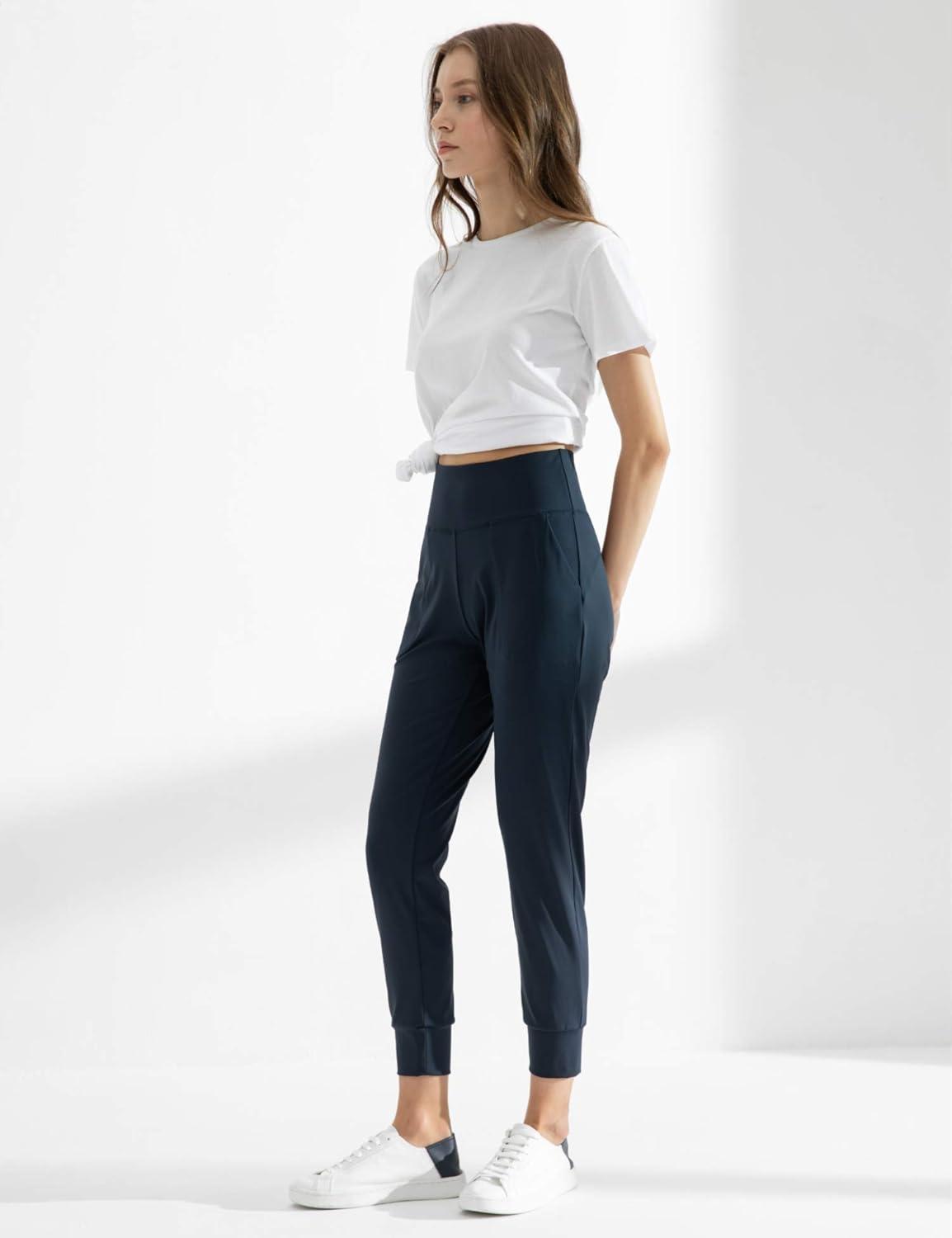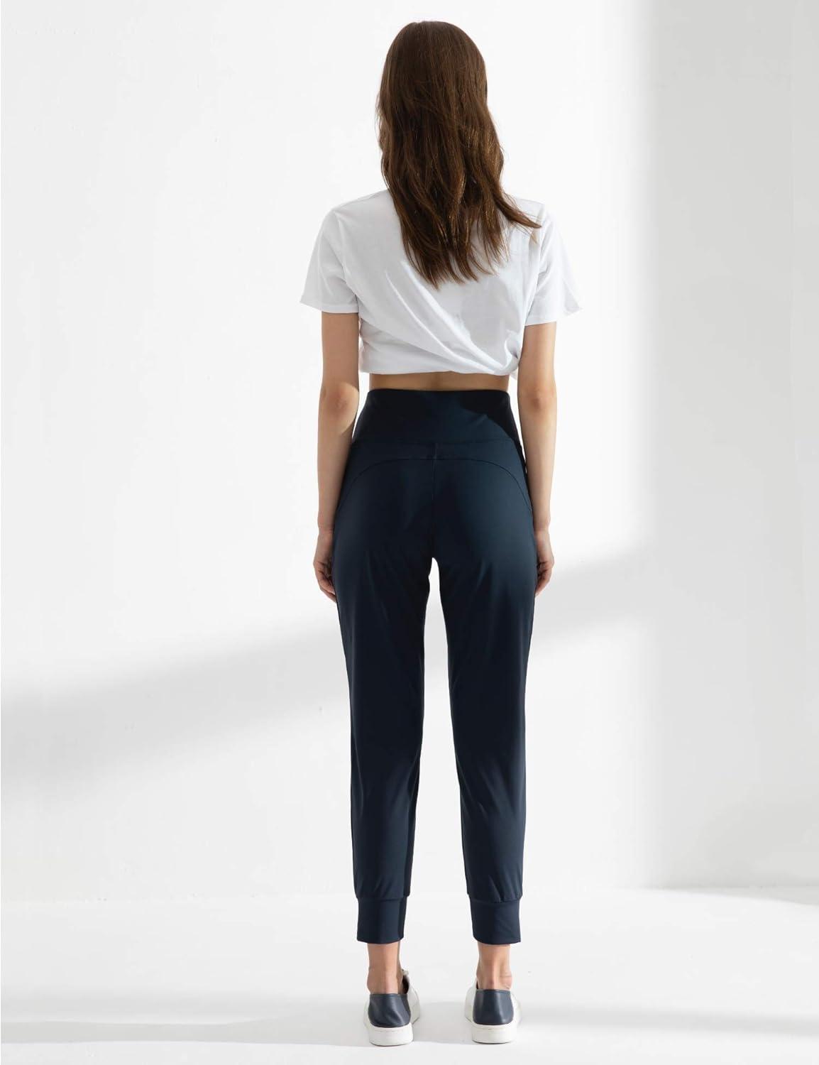 AJISAI Women’s High Waisted Joggers with Pockets Yoga Pants for Running Lounge(Navy)