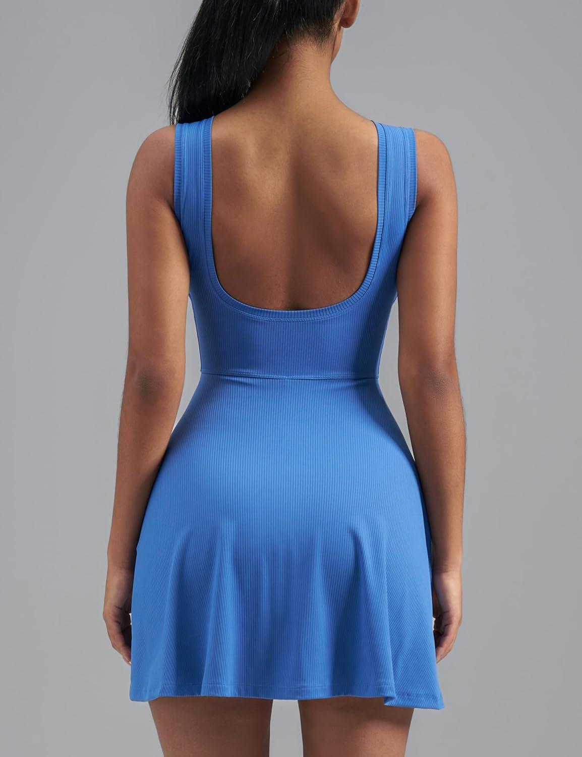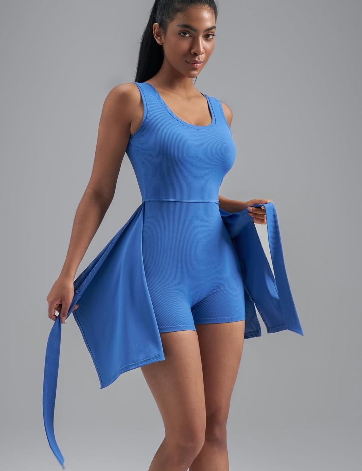 imageAJISAI Womens Summer Athletic Sleeveless Tennis Wrap Skirt Mini Dress Built in Shorts Golf Dress Workout Romper SkortBlue