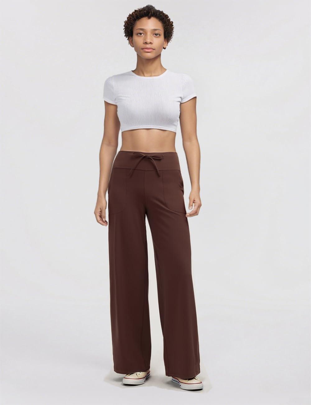 AJISAI Womens Wide Leg Sweatpants High Waist Drawstring Comfy Yoga Pants with Pockets for Casual Work Workout Petite/Regular(Coffee)