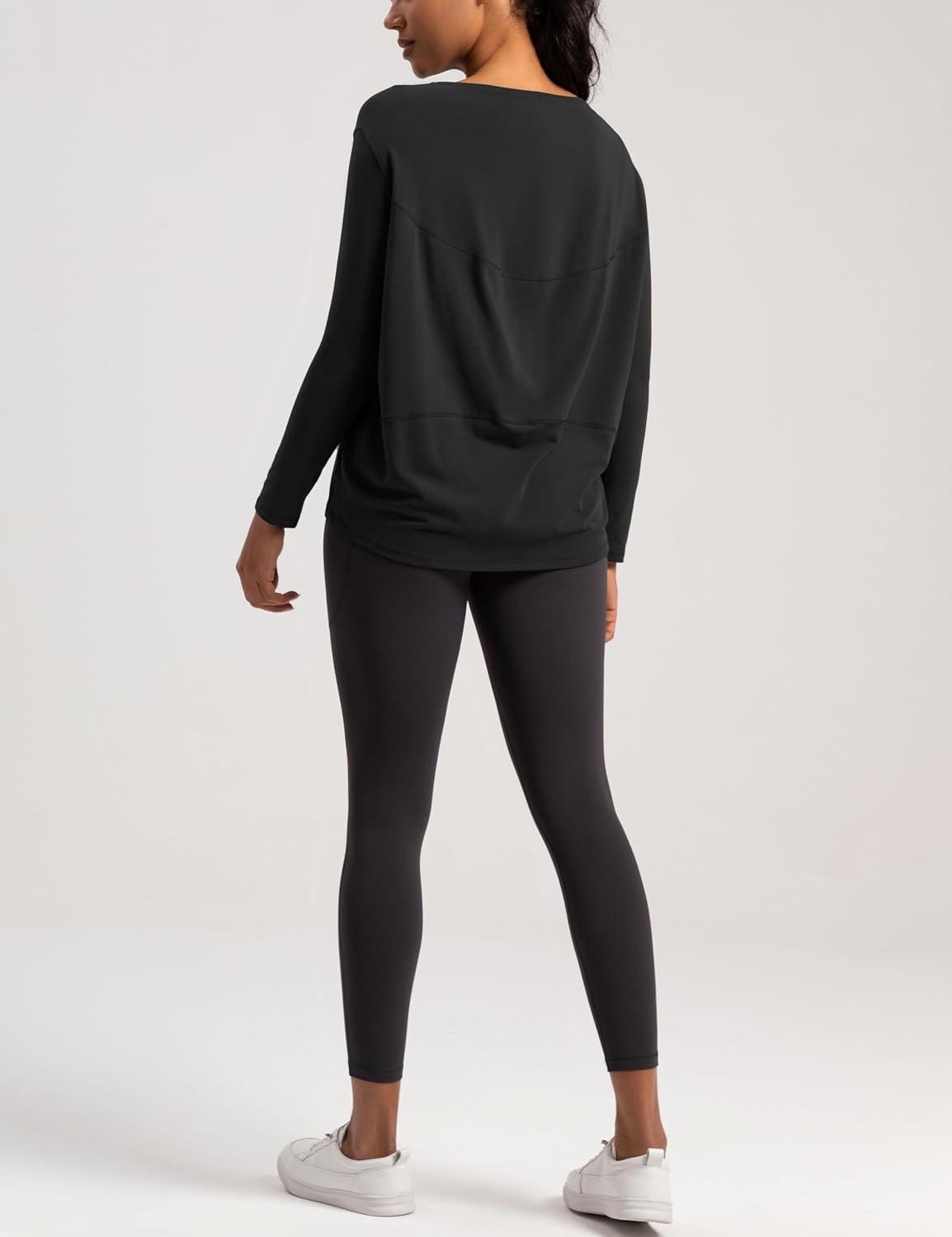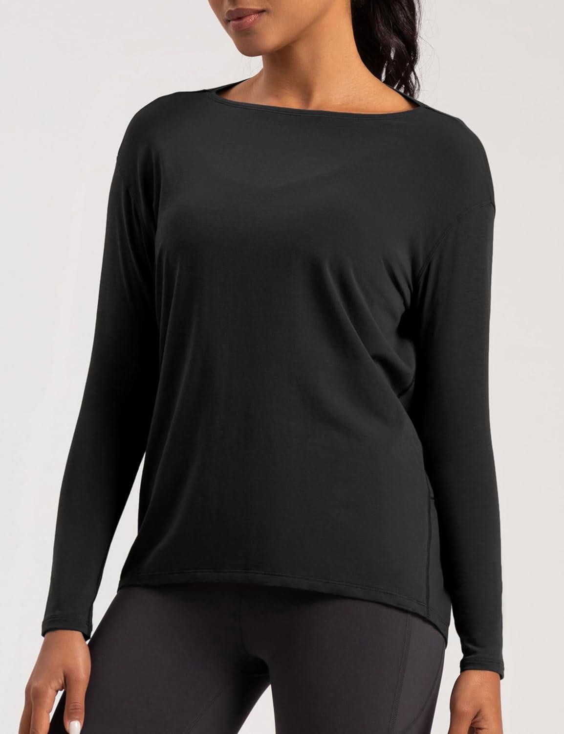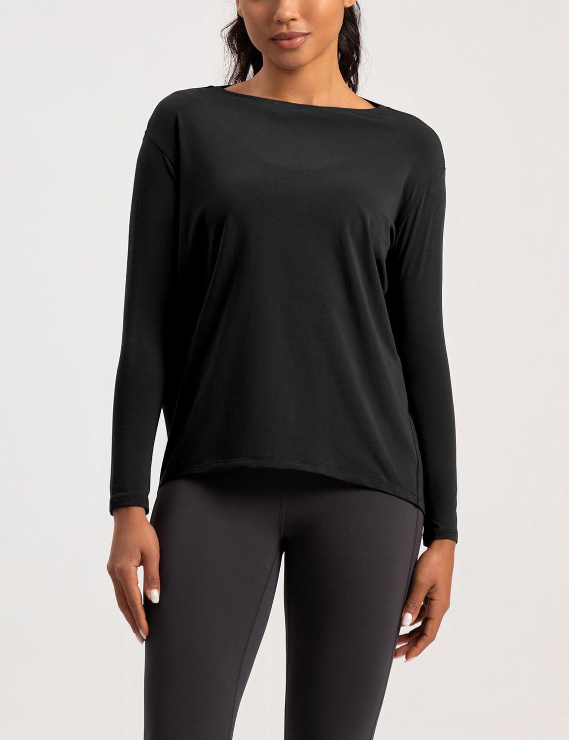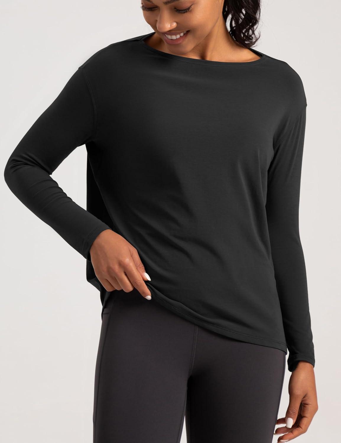 Cotton Shirts Long Sleeve Workout Tee for Women Loose Fit Athletic Yoga T-Shirts Casual Boat Neck Fall Tops