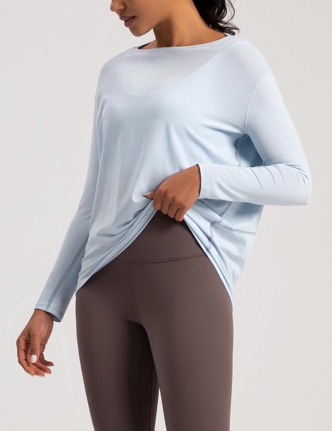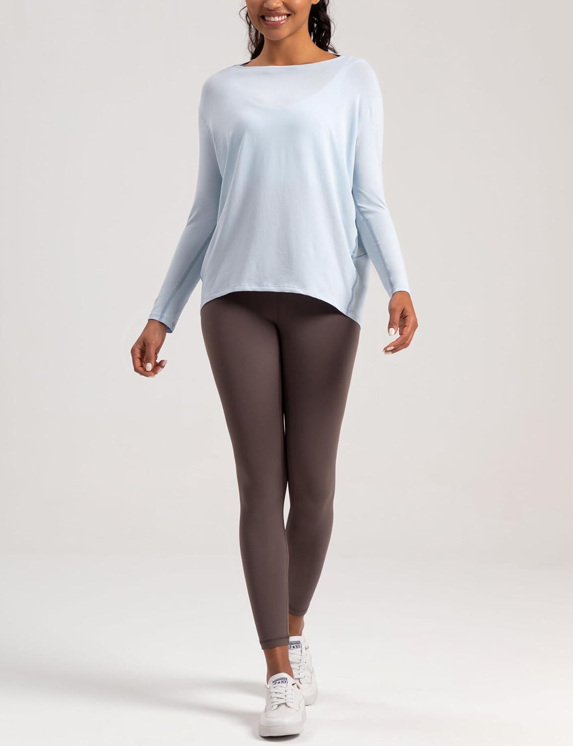 Cotton Shirts Long Sleeve Workout Tee for Women Loose Fit Athletic Yoga T-Shirts Casual Boat Neck Fall Tops