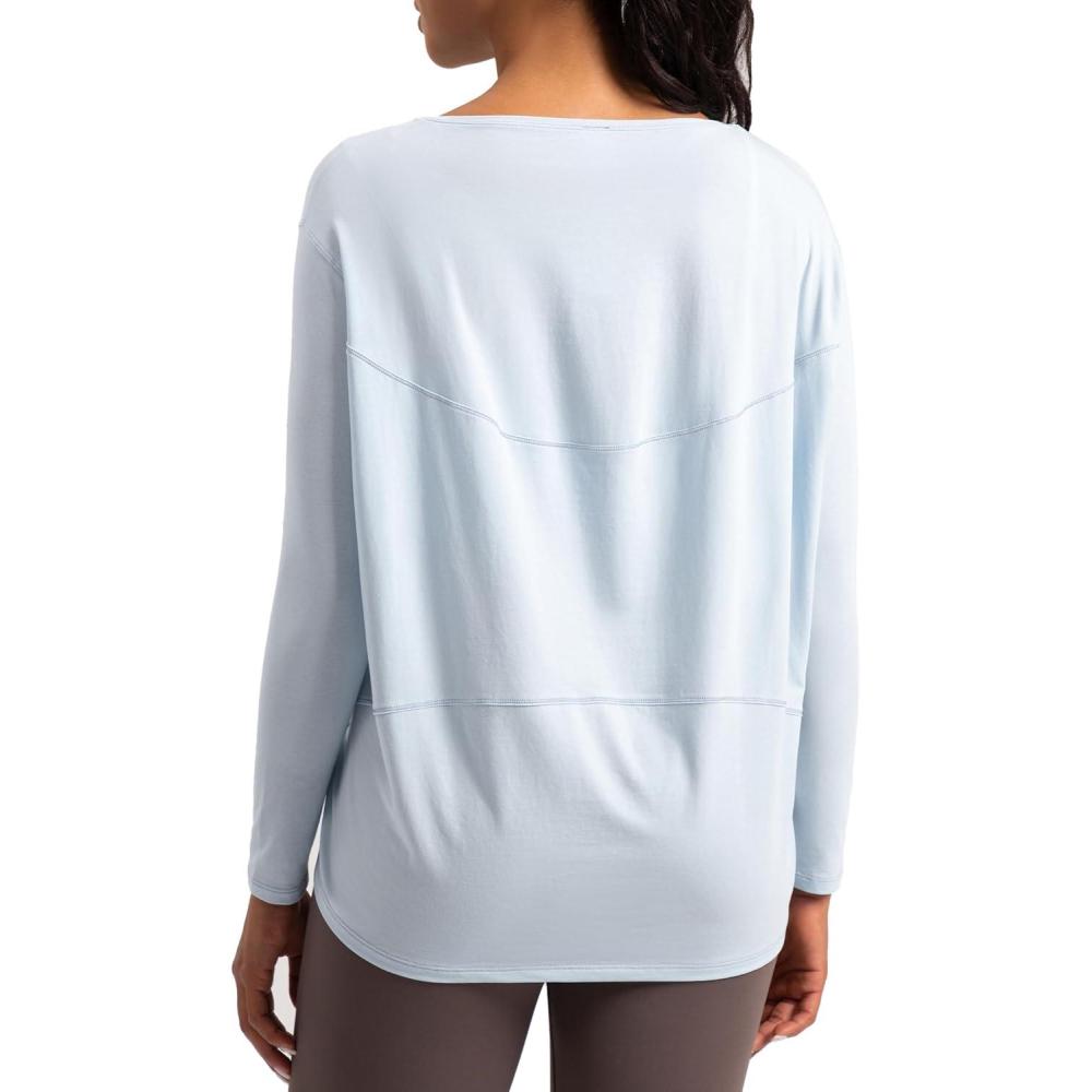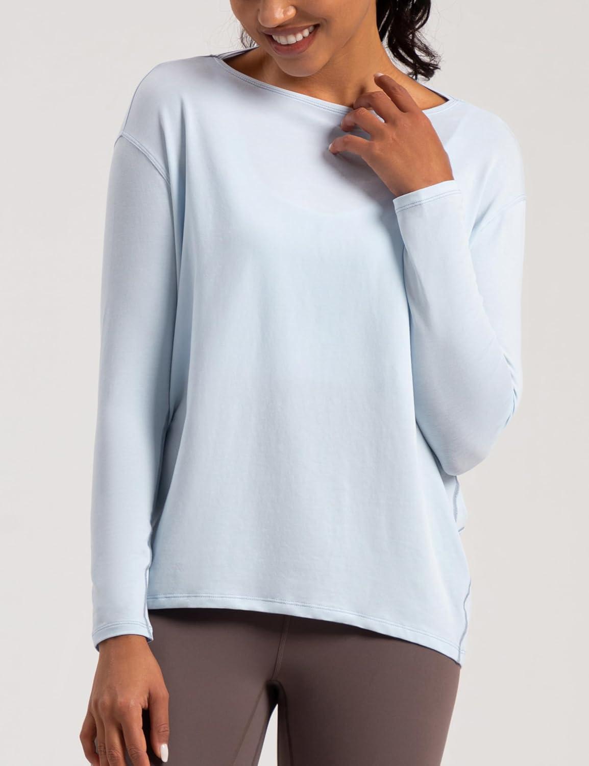 Cotton Shirts Long Sleeve Workout Tee for Women Loose Fit Athletic Yoga T-Shirts Casual Boat Neck Fall Tops(Blue)