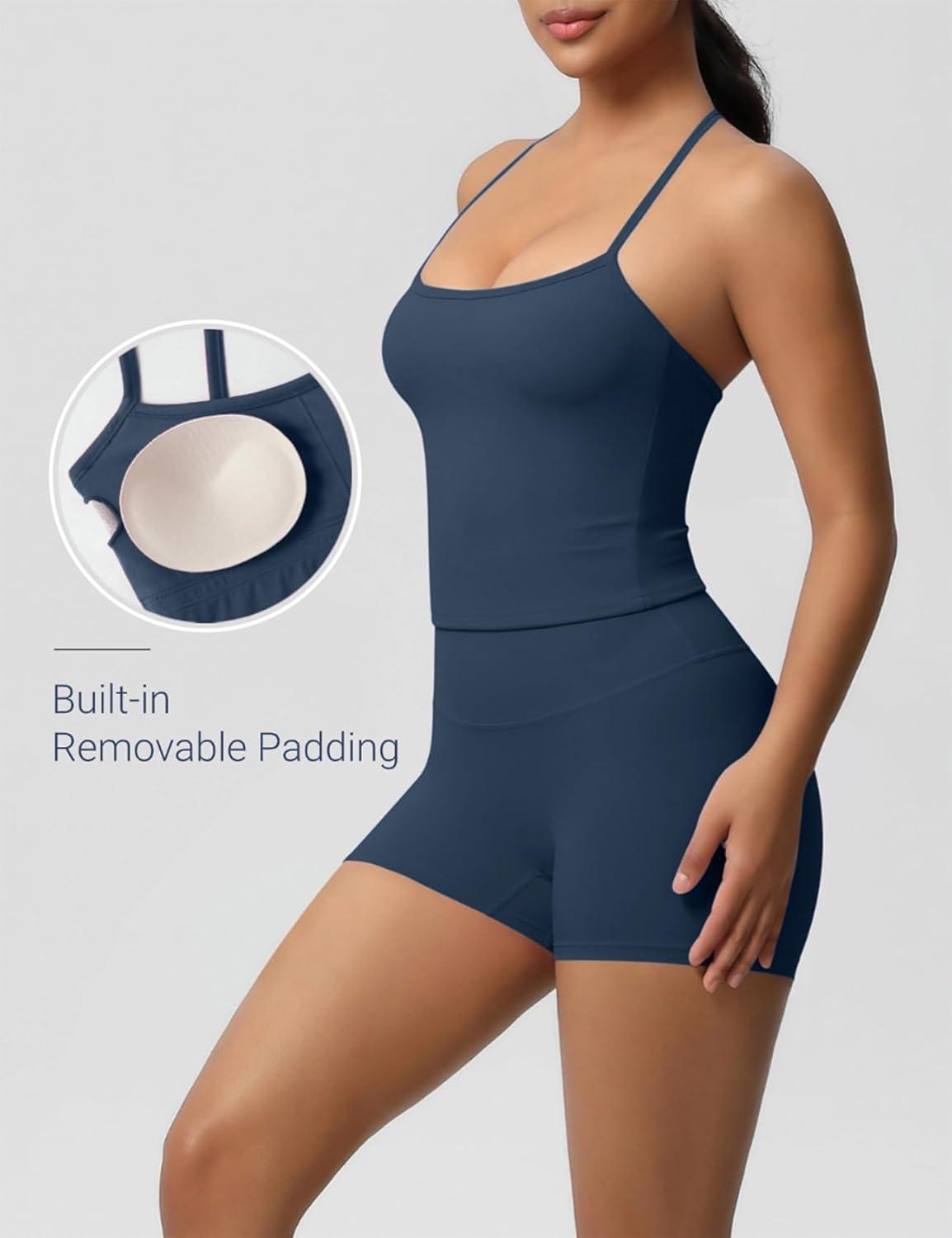 imageWomen 3 Piece Workout Sets Padded Tank Top Sports Bra Matching High Waist Biker Shorts ampamp Gym Yoga LeggingsNavy