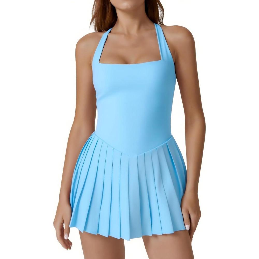 Women Pleated Tennis Dress with Shorts Adjustable Strap Golf Dresses Athletic Workout Skort with Pockets(Sky Blue)