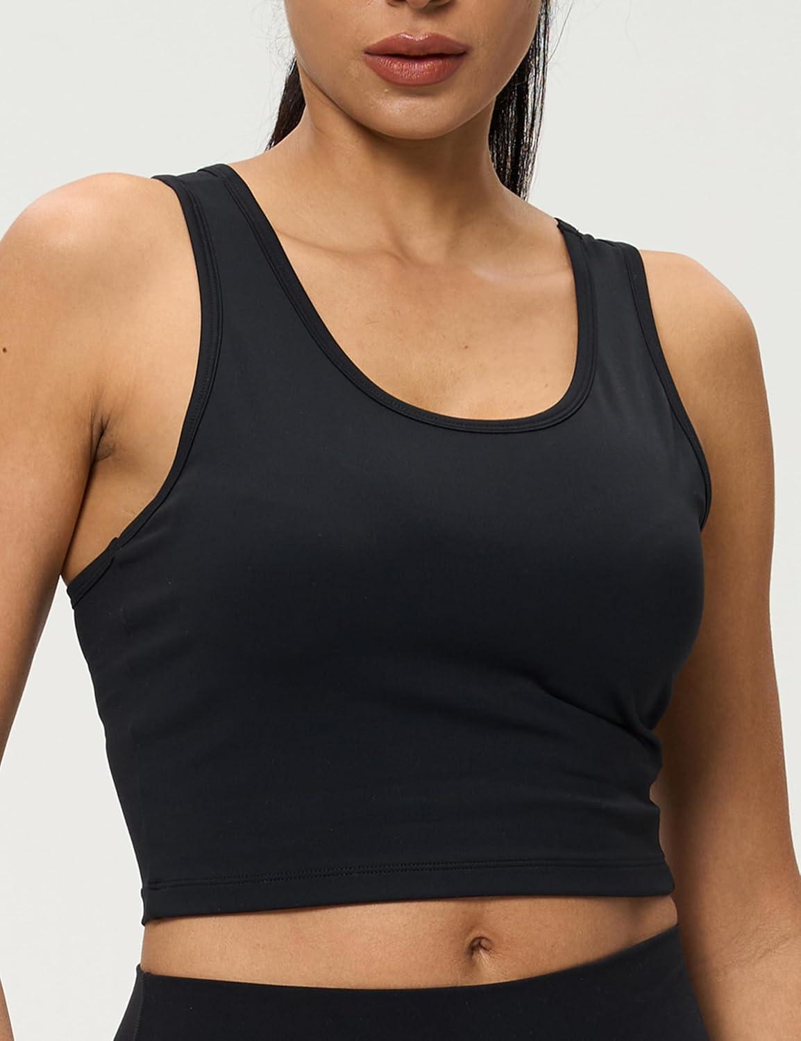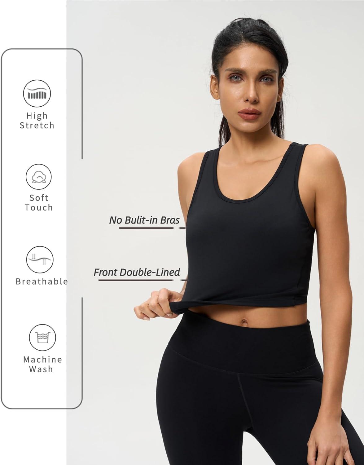 Womens Double Lined Workout Crop Tank Top Ultra-Soft Racerback Yoga Athletic Tops Sleeveless(Black)