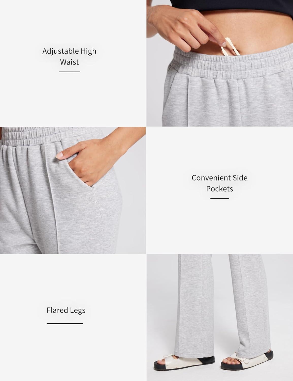 imageWomens Modal Wide Leg Sweatpants with Pockets High Waist Lounge Flared Sweat Pants Work Dress JoggersHeather Grey