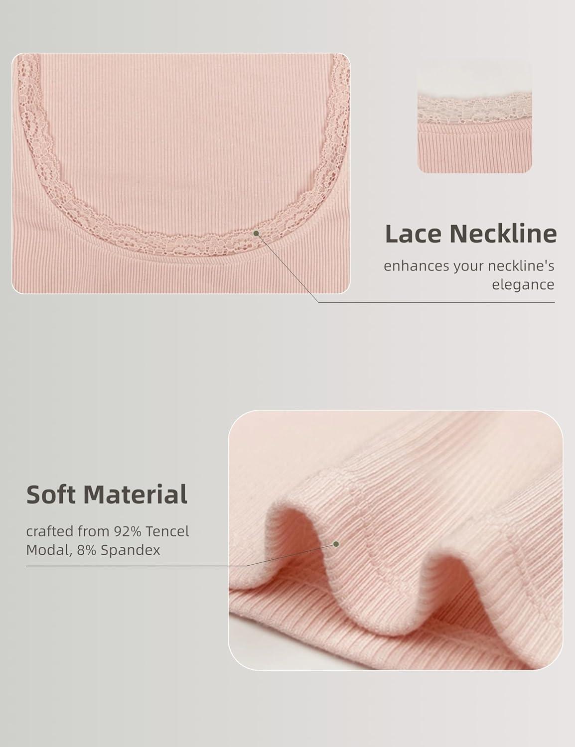 Women's Summer Soft Modal Ribbed T-Shirts with Lace Hem Short Sleeve Round Neck Tops Slim Fit Going Out Tees